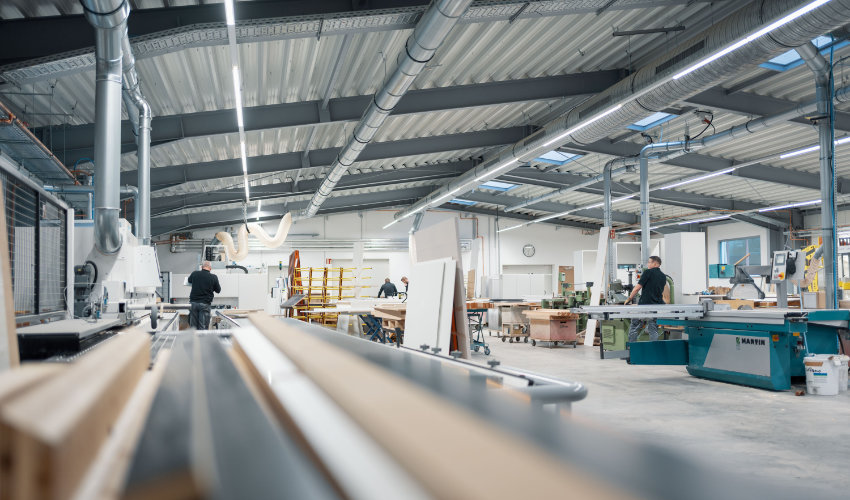Die Zutaten sind handwerkliches Können im Zusammenspiel mit hochmodernen Maschinen (z. B. CNC-Bearbeitungszentrum, Plattenaufteilanlage und Verschnittoptimierung).